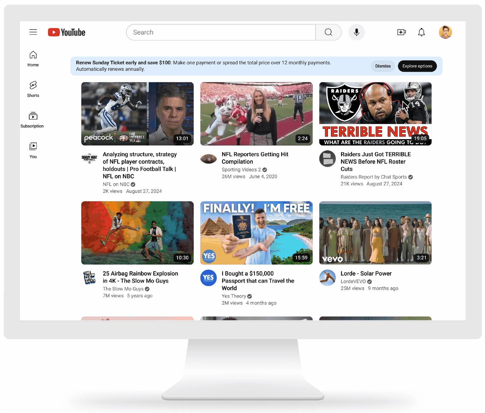 Existing Sunday Ticket subscribers are given the opportunity to renew their membership early and as an incentive receive a discount and the option to switch to monthly installments.